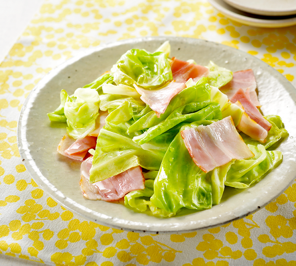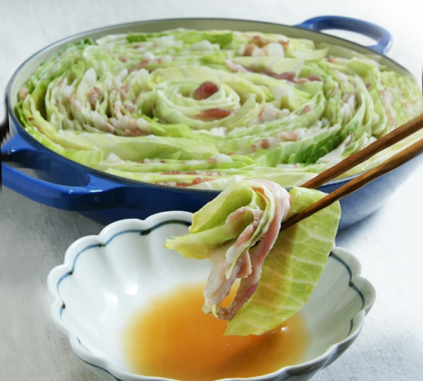 キャベツとベーコンのうまたれ蒸し