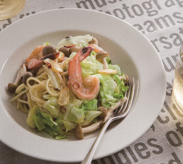 キャベツとえびのペペロンチーノ
